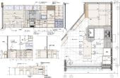 基本設計では<間取り>を決めるところがポイントになりますがここでは各部の詳細までを決めていきます。各部分の検討をしながら図面化していき、必要な修正を加えていきます。 例えば当方では、ほとんどの仕事でオリジナルのキッチンをその家の空間にあわせて設計しています。そうすると、その部分も詳細な図面が必要となります。冷蔵庫から食材を出して、下ごしらえをして調理、器に盛る... というような流れを想像しながら作図していきます。 |