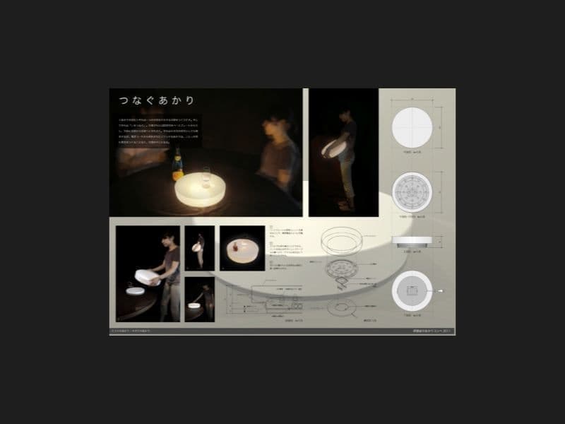 〈あかりを囲む〉それは一つの時間を共有する体験をつくりだす。そしてそれは「人をつなぐ」。充電されたLED照明をベースプレートから外し、気軽に部屋から部屋へと持ち歩く。それは非常用の照明としても機能するが、電源コードから解放されたソリッドなあかりは、人と人の間に敷居をつくることなく、笑顔の中心となる。